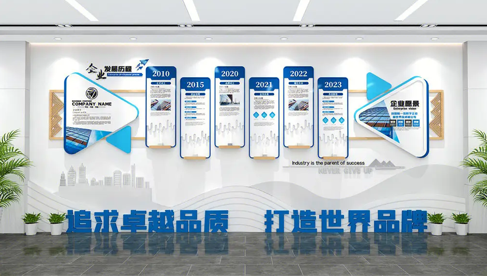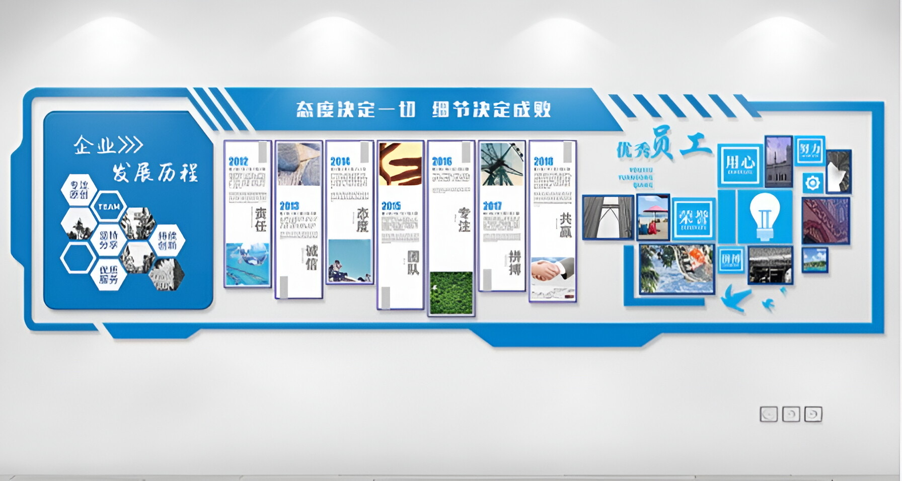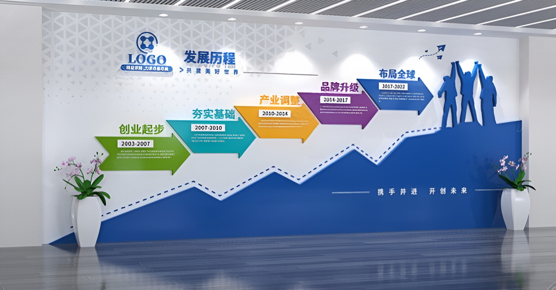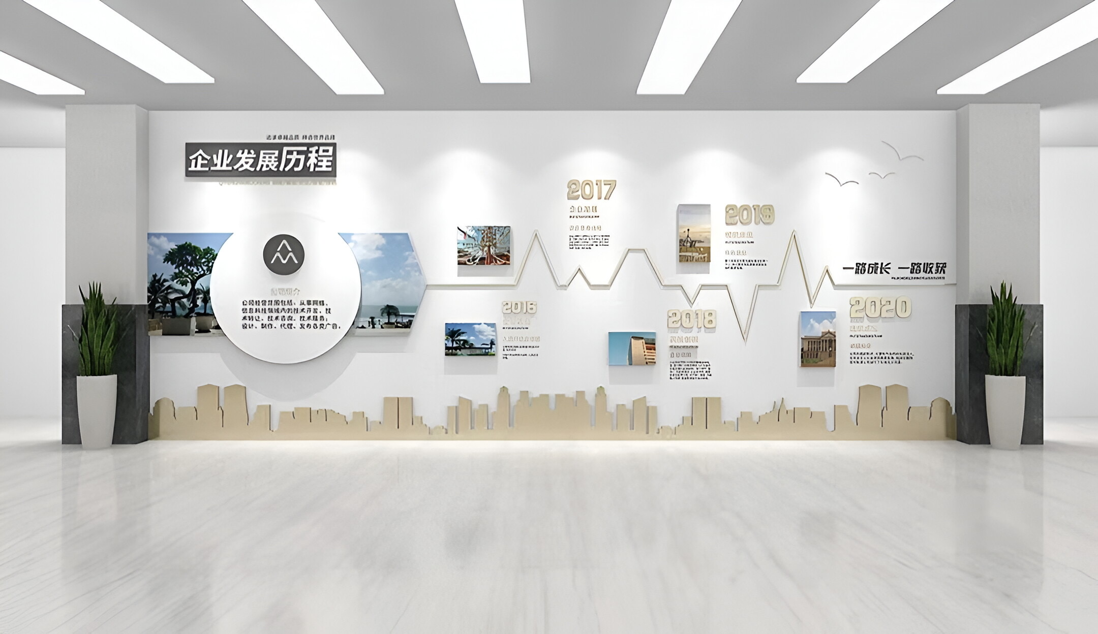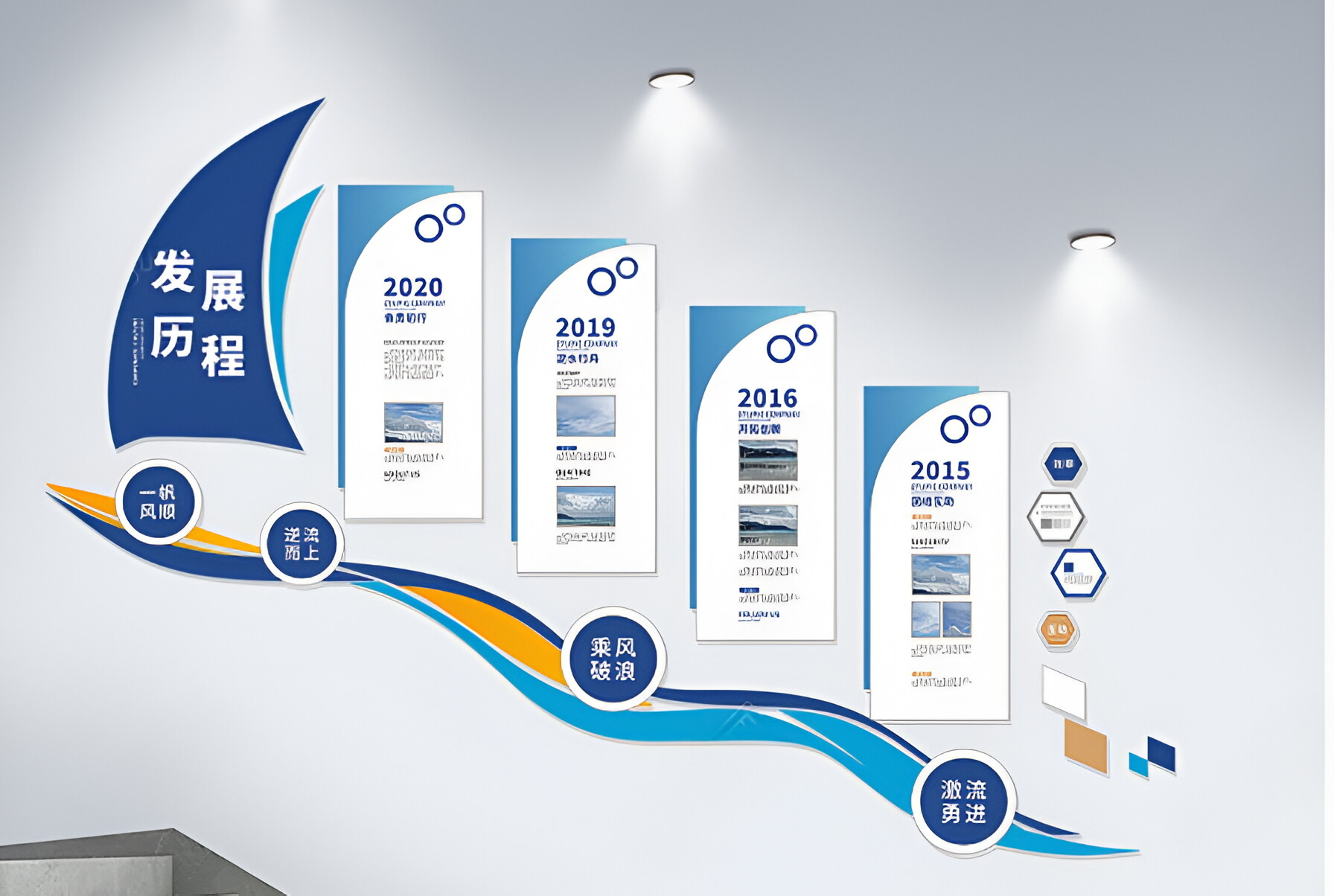 企業(yè)歷程墻可以表達公司多年的發(fā)展成果,利用時間軸來呈現(xiàn)企業(yè)的發(fā)展歷程,在時間滾軸上留下一個個真實的印記,歷史道路刻在時光里。