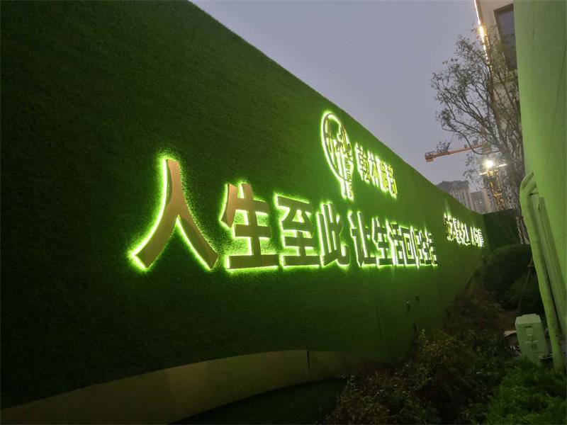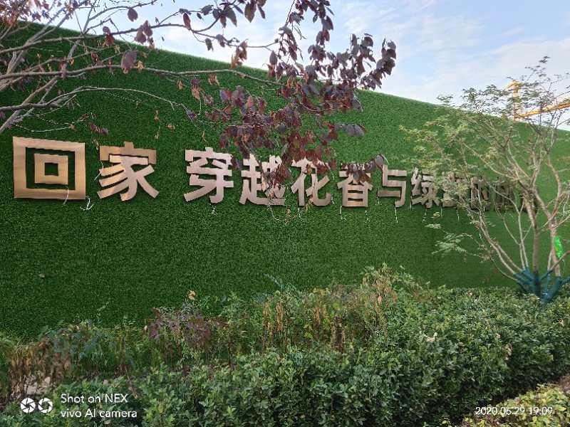 雅居樂西安區域,渭南翰林雅郡項目草皮圍蔽、玫瑰金發光字,我們現場的同事在戶外40度的高溫下確保按時按質施工完畢,效果很贊